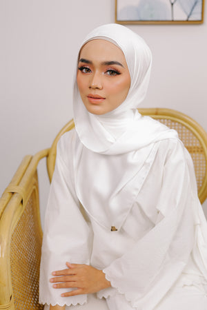 The Aya Afraa long hijab is soft yet striking, crafted from glossy corn silk with exquisite detailing and neat stitching. Designed for strong and devoted women, it reflects the gentle yet resilient spirit within you. A meaningful and elegant choice, perfect as an Eid hijab. ✨