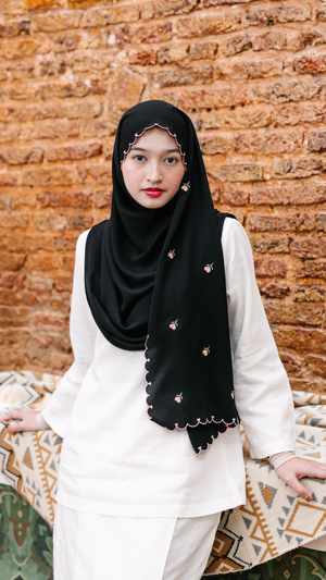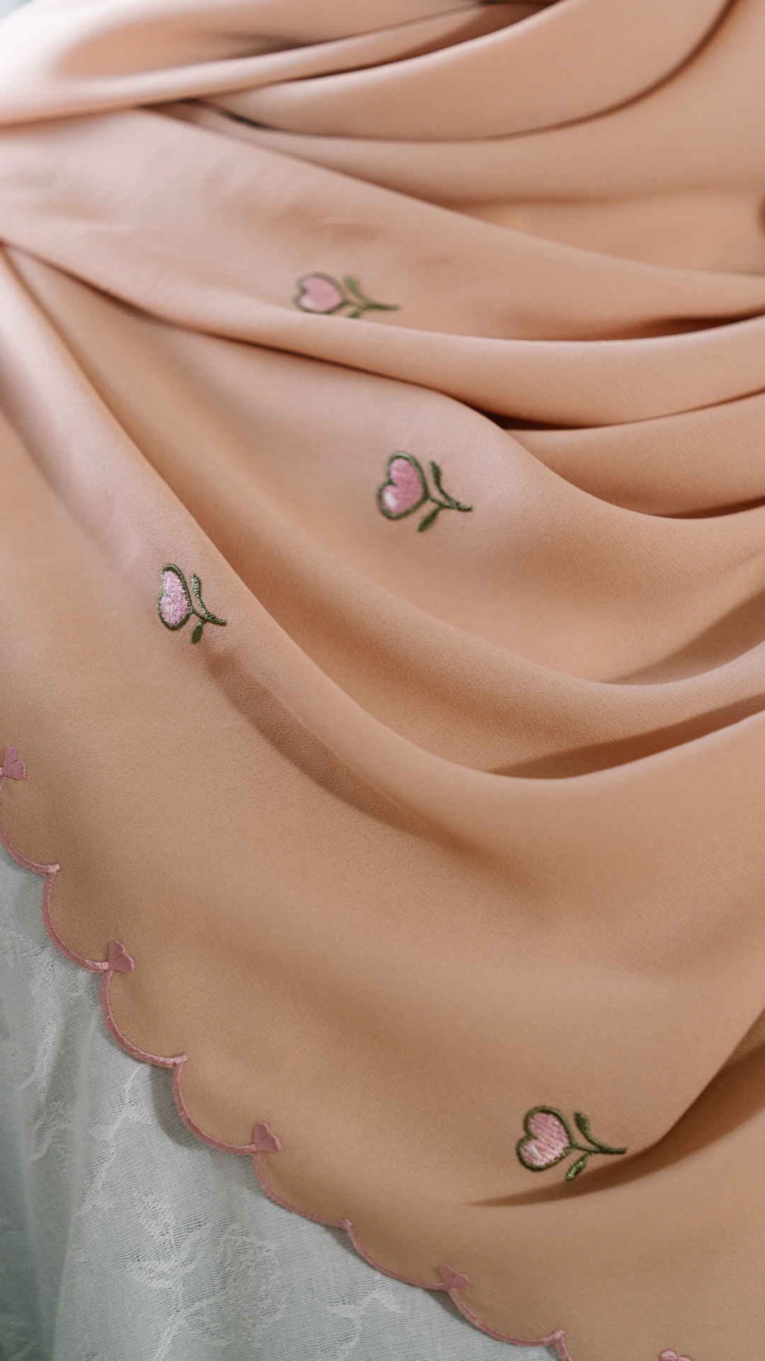 ✨ Wrap yourself in grace with our exquisite embroidered hijab, delicately adorned with blooming flowers and elegant heart motifs. Each stitch tells a story of love and beauty, blending romance and nature into a timeless hijab piece made just for you.